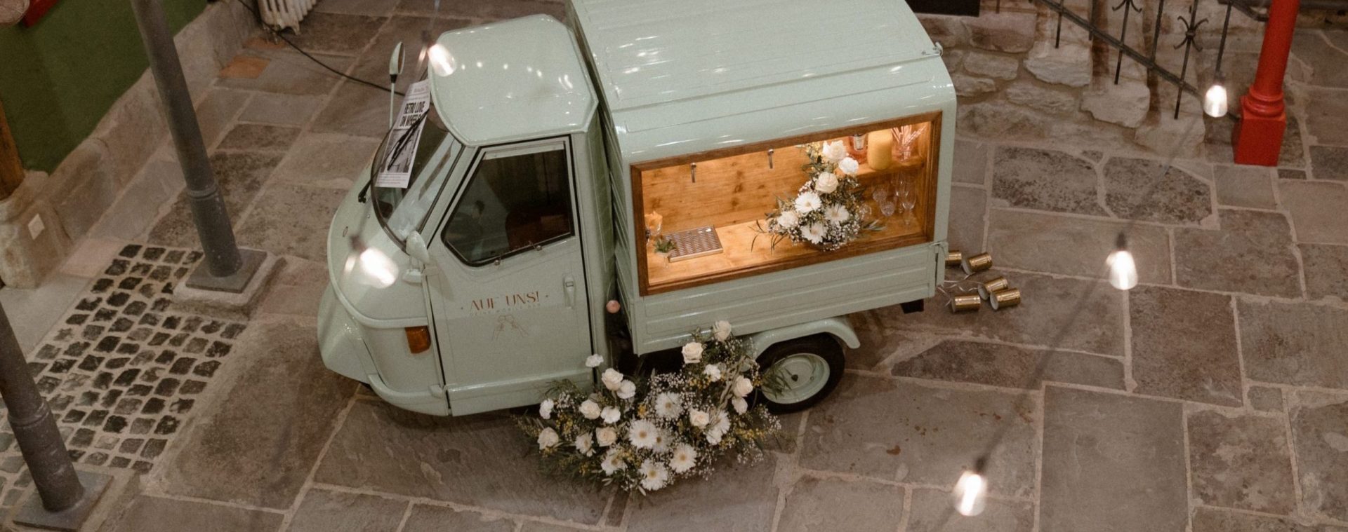 Du wünschst Dir einen besonderen Empfang für Deine Hochzeit, Deinen Geburtstag oder Dein Firmenevent? Unsere Ape bringt genau das: Stil, Charme und das gewisse Etwas.